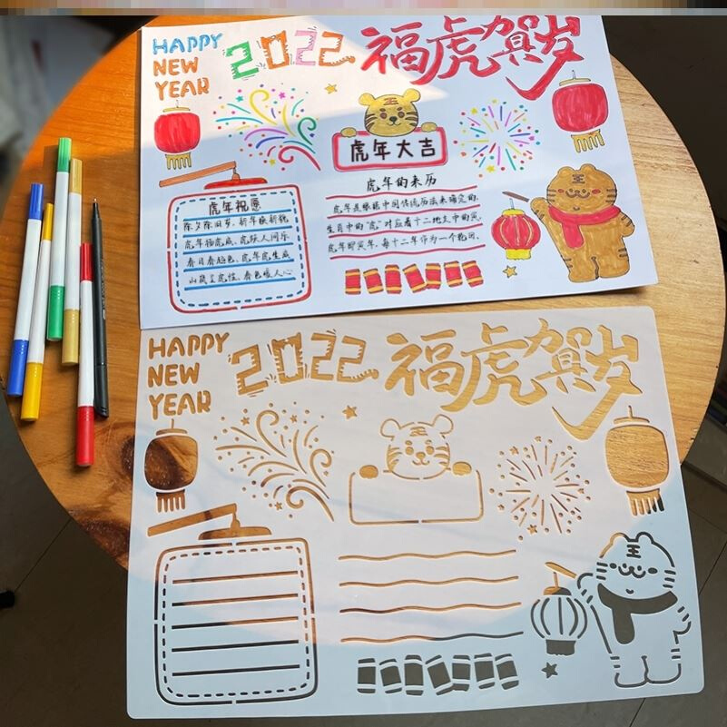 2022虎年手抄报模板4k8开绘画小学生E迎新年快乐跨年新春模具万能热门设计联盟服务商