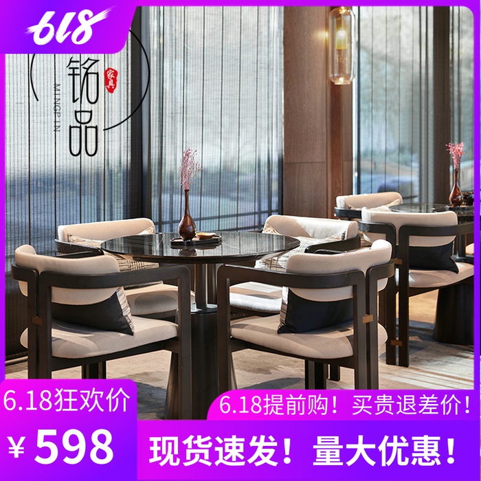 新中式售楼处部洽谈桌椅r组合轻奢碧桂园会所休闲接待实木餐椅现热门设计联盟服务商