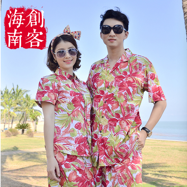 海南岛服沙滩衬衫男旅游纯棉夏威夷大码花衬衣女休闲情侣套装